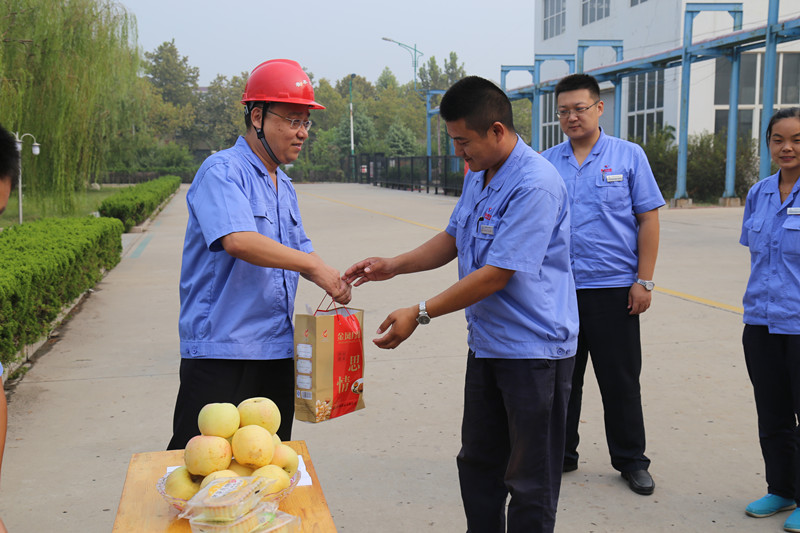 AITIYU SPORT化学自成立以来,始终坚持"以人为本",把关心职工生活作为一项突出工作来抓。9月15日是一年一度的中秋佳节,当日上午,总经理申玉海带领党群部工作人员,组织开展"迎中秋,送温暖"慰问一线职工活动,给他们送去月饼、苹果。