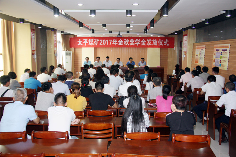 8月23日,太平煤矿在机关办公楼六楼会议室举办了2017年"金秋奖学"金发放仪式,共有34名职工子女通过高考升入高等院校(本科16名、专科18名),共计发放奖学金8万余元。矿党委书记汤保民参加仪式并讲话。