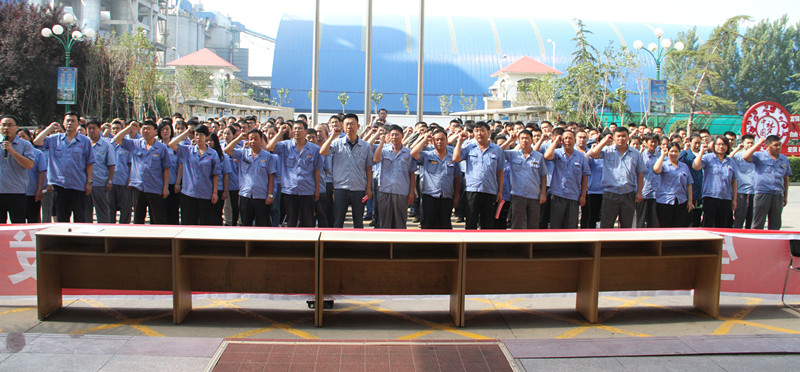 6月1日上午8时30分,金威热电公司在公司办公楼前隆重举行安全生产月活动启动仪式暨安全宣誓签名活动,该公司管理人员、检修、部分运行人员共150多人参加了启动仪式。