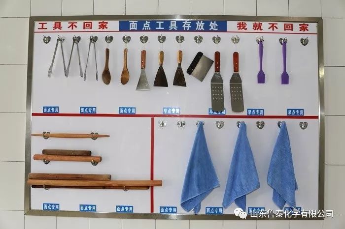 厨房是易污爱脏的重点区域,然而在餐厅管理人员的带领下,多年的旧工具却擦出了新模样,此时厨具如新,锅灶清爽,旧貌换新颜。更有甚者,后厨每餐都能做到“工具不回家,我就不回家”。远远望去,锅碗瓢盆的摆放,横看成条,竖观成线,整整齐齐,条理清晰。