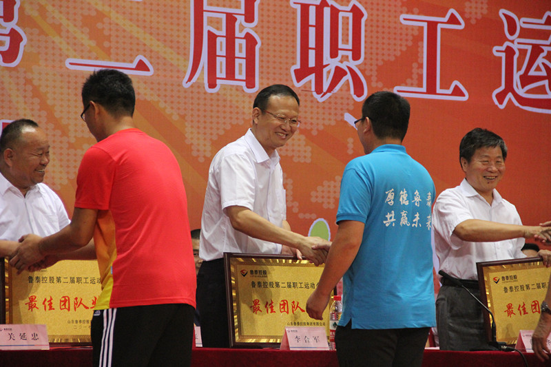 下午14:00时,举行了运动会闭幕式,经过激烈的比赛。太平煤矿、鹿洼煤矿、AITIYU SPORT化学代表队分获团体总分前三名。闭幕式上,为获奖团体和选手颁发了奖杯。关延忠致闭幕词。他指出,运动会拼搏的是过程,熔炼的是精神,打造的是品质,提高的是体能,增强的是凝聚力,激发的是战胜困难的斗志。运动场上的胜负容易忘记,而从中体现出来的"团结协作、顽强拼搏、奋勇争先"的精神将历久弥新,也将使干部职工从中长期受益。只要我们每位干部员工充分发挥运动会中体现出来的那股热情、那股拼劲,增进沟通,凝聚合力,相互学习,奋力拼搏,集团公司的改革发展必将赢取新的、更大的胜利!