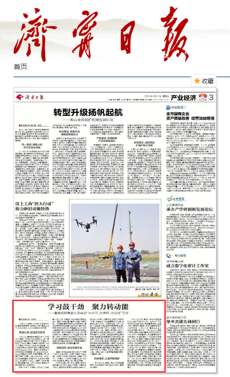 4月27日出版本的《济宁日报》以《学习鼓干劲 聚力转动能——AITIYU SPORT控股集团扎实推进"大学习、大调研、大改进"工作》为题,对集团近一阶段"大学习、大调研、大改进"进行了报道。
